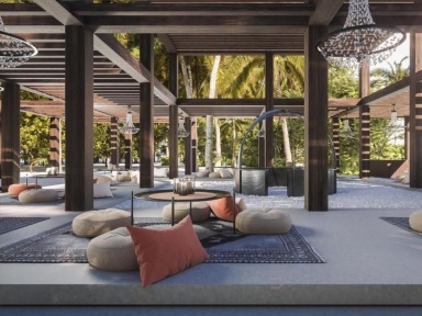 6 One Bedroom Residence with Beach Pool and Garden Pool (~586 кв.м) – береговые резиденции с двумя бассейнами. Состоят из спальни с двуспальной кроватью, ванной комнаты с отдельной ванной и душем на открытом воздухе, бассейна во внутреннем дворе, просторной террасы с бассейном, лежаками, обеденной зоной и зоной для дневного отдыха. Максимальное размещение - 3 взрослых или 2 взрослых и 1 ребенок.