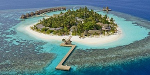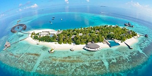 Итак, сам курорт описывают, как “Затерянный в Индийском океане”. Он находится на частном острове, до столицы Мале - 400 км. Расположено местечко на атолле Гаафу Даалу. Первое, что бросилось в глаза, так это изобилие зелени и белый, как на картинках, песок.